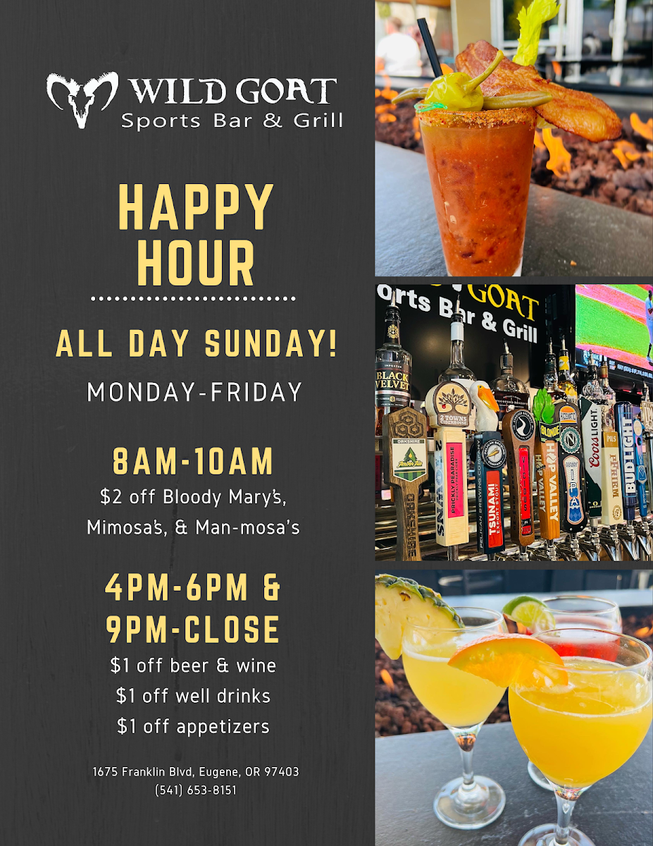 Welcome to Wild Goat Sports Bar & Grill, a culinary gem located at 1675 Franklin Blvd, Eugene, OR. The menu features a delightful array of options sure to please any palate. Start with their housemade chili, available in cup or bowl sizes, or indulge in a crisp House Salad topped with your choice of grilled proteins like chicken or shrimp.